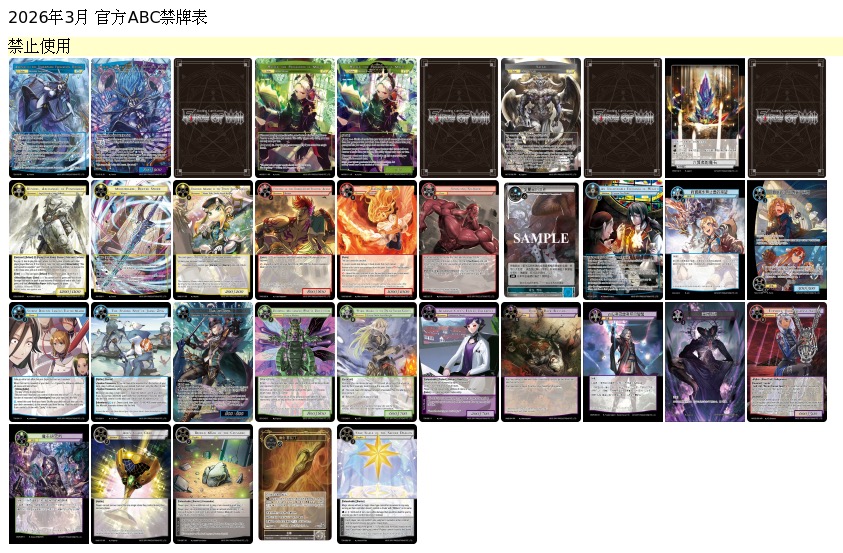 官方ABC赛制禁牌表 - 2026年3月更新