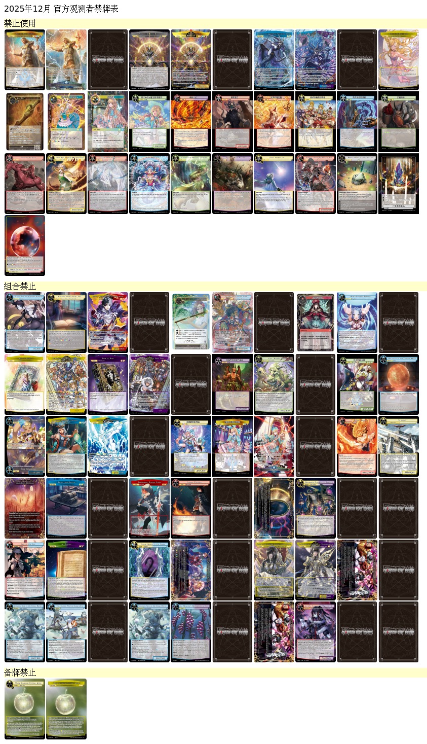 官方观测者赛制禁牌表 - 2025年12月更新